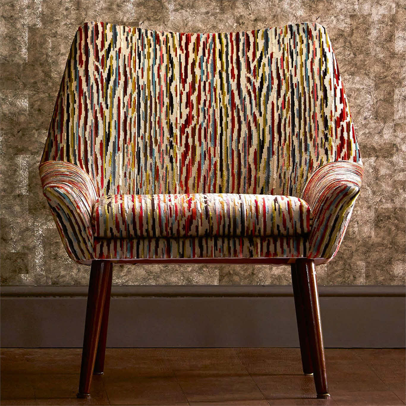 Un design géométrique frappant en velours coupé dans une palette vibrante.