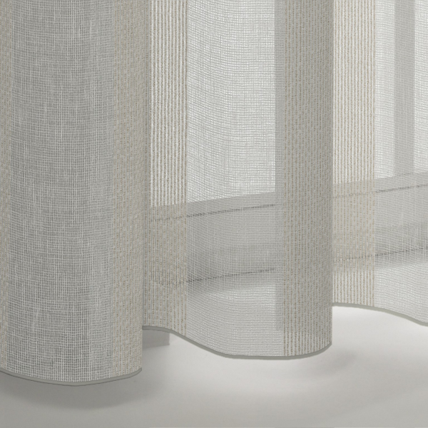 Faites une pause - le tissu transparent chic vous invite toujours à faire une pause. Le toucher doux et ses rayures verticales d'aspect rustique sur un fond clair et gazé transmettent toujours un sentiment de sécurité. Tantôt en ivoire subtil, tantôt en sable doux, mais aussi en argent, pierre et titane.